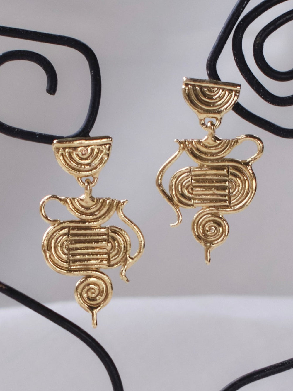 An ode to two great women. My mother, and the clothing designer Mara Hoffman. Both artists have inspired the technique I've used to create this design. Mara's TIA top and my mother's Vases, both draw the lines of the female form in such classic and timeless strokes that I wanted to recreate their vision in the form of jewellery. The Nefertiti Earrings also have a little sting. A tiny bit of sass at the base of the design that electrifies and invigorates much like the sting of a nettle. Not all stings are bad for us. Some are stimulating, and a wake up call or reminder that we are indeed very much alive.